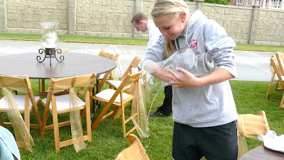remember these photos? well, this was their reception, and it was so much fun to photograph. about 2 minutes after they set the tables in a beautiful backyard in mapleton, there was a clap of thunder and then...you guessed it. a torrential downpour! everything was drenched. d.r.e.n.c.h.e.d. i tell ya! it was awful...but, upon further inspection, it was wonderful too. i couldn't help but enjoy capturing the chaotic, and very wet moments that this beautiful couple will be laughing about on their honeymoon and fondly telling their grandchildren about at their 60th wedding anniversary. all of it just felt... special...from the wrinkled tablecloths to the hurricane vases filled with rainwater. even more special were the 20 or so people who were rushing all over the yard wiping, and dumping, and cleaning, and re-arranging all for the love of this couple. the food was beautiful, the setting was gorgeous, and there were plenty of wonderful characters to capture in my lens. here are just a few of my favorites. (and yes, i really like food...how could you tell?)